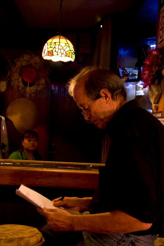 Bangkok Noir Artist, Chris Coles prepares for presentation – Photo by Aroon Thaewchattura