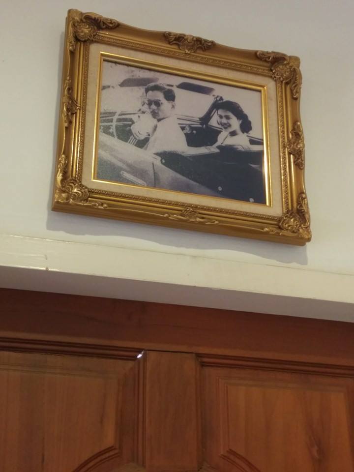 One of the most visible signs of the respect and love Thai people have for King Bhumibol are the many pictures you will see of him in the homes and businesses in Thailand. Decorum dictates that any picture of the King should be in a high place, above the head level of any person in the house. Below is a picture we have of King Bhumibol and the Queen in our home, above the door to my office: