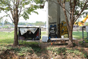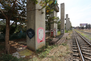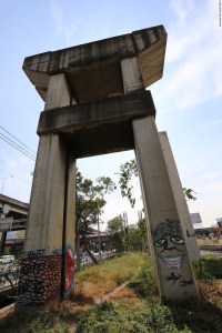The abandoned concrete pillars known as BERTS (Bangkok Elevated Rail Transport System) are due to be demolished to make way for the Red Line electric train. The bases of these concrete henges have become the canvases for graffitti artists and taggers. It seemed important to document some of these and so I walked from the Miracle Grand along the construction route to get some pictures.