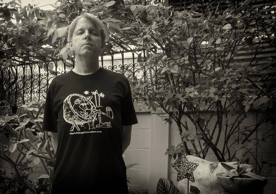 The Phantom Lover author Jim Algie looking creative in his Gop T