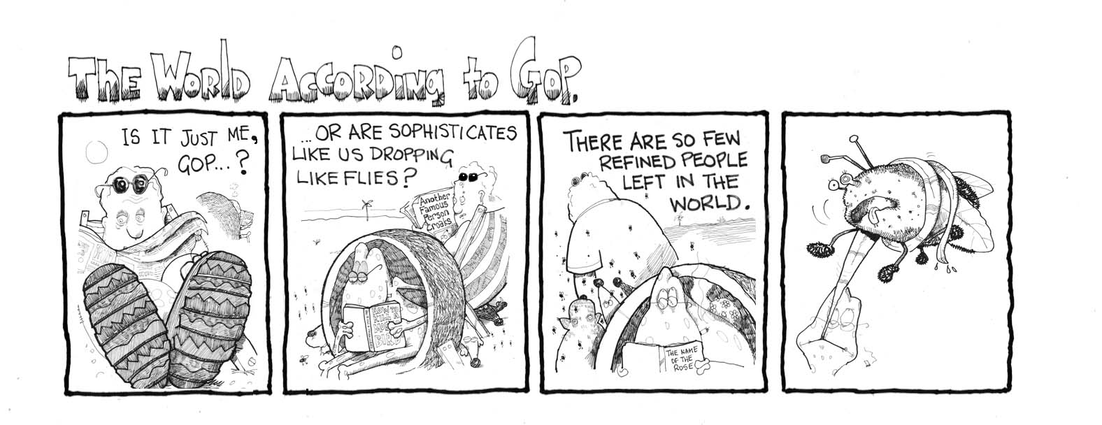 To see all of The World According to Gop cartoon strips in one place click the picture of Bangkok Soi Dog #1, above, to be taken to Bangkok Beat – The Store. Thanks for stopping by.