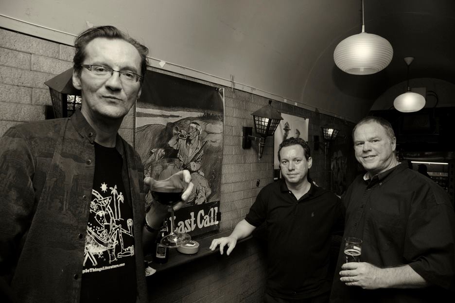 L to R Jim Algie author of the soon to be released book, “On the Night Joey Ramone Died: Tales of rock ‘n’ punk from Bangkok, New York, Cambodia and Norway.” James A. Newman, author of the Joe Dylan series the latest release being “Fun City Punch” and Thomas Hunt Locke, author of the Declan Power and Sam Collins series and soon to be released, The Beauty of Isaan based on the life of legendary Checkinn99 beauty, Mama Noi, who passed away in 2016.