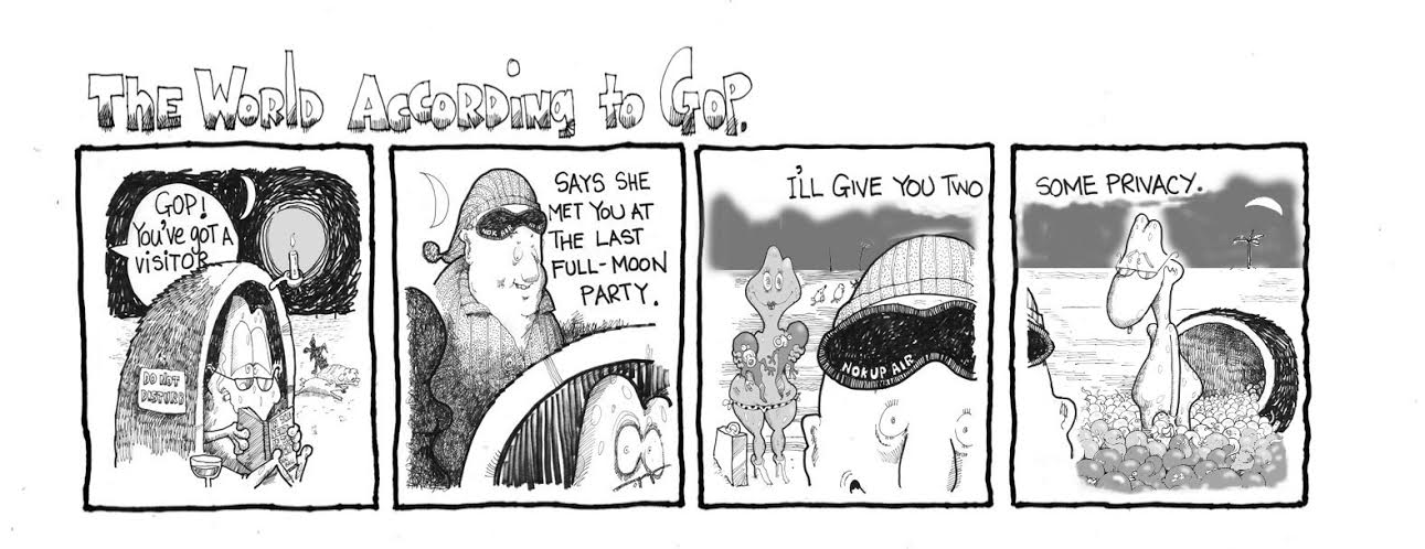 Illustration by award winning novelist living an anti-social media life in the South of Thailand