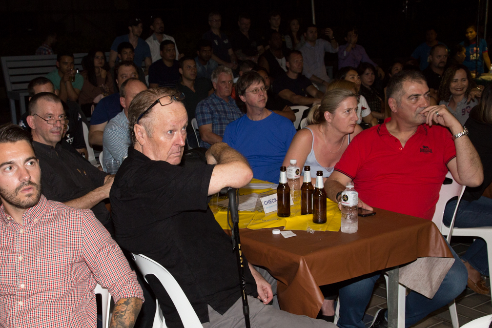 The previous Muay Thai event I attended was at the Channel 7 Arena in Bangkok and it was an entirely different spectacle, complete with gambling and meant for a mainly Thai audience. What the Ambassador Hotel has done in conjunction with Proflex Fight Night and a group of congenial bar owners is create a western friendly environment that showcases talented fighters at a cost that is reasonable for spectators and fans of martial arts. It was notable that a good 20%+ of the audience was female that night, including members of Music of the Heart Band, Donna, Cherry, Grace and April who gave a knockout performance of the song known from the Rocky movies, The Eye of the Tiger. Well done ladies, particularly Donna on that number.