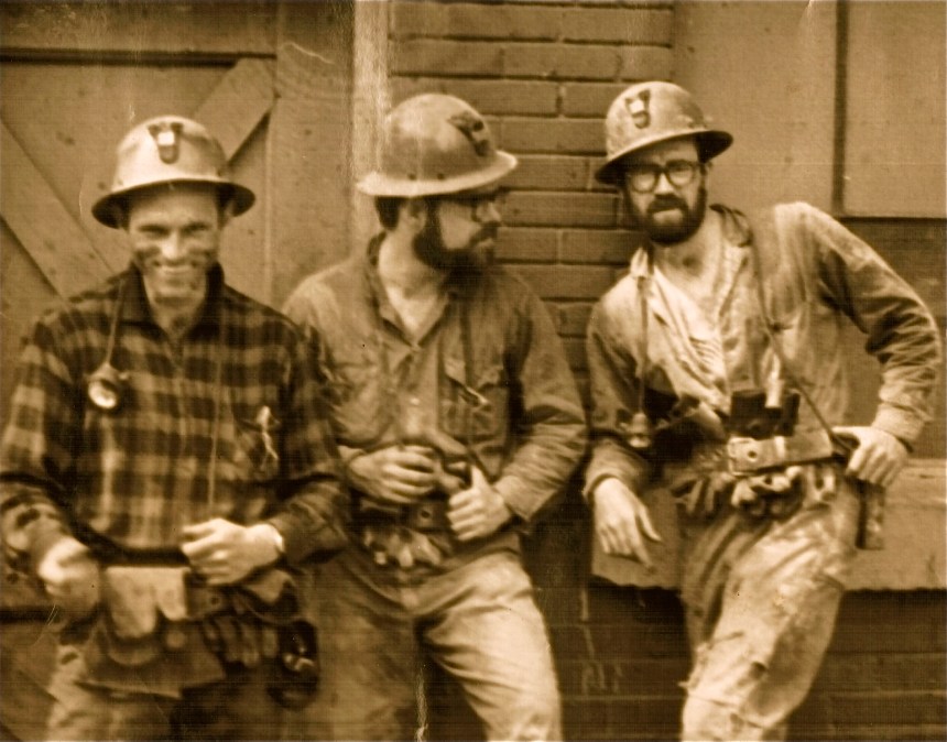 Photographic evidence that Collin Piprell (center) dies his beard grey. During his Canadian mining days